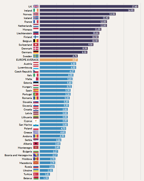 Prix moyen d’un paquet de 20 cigarettes en 2025
