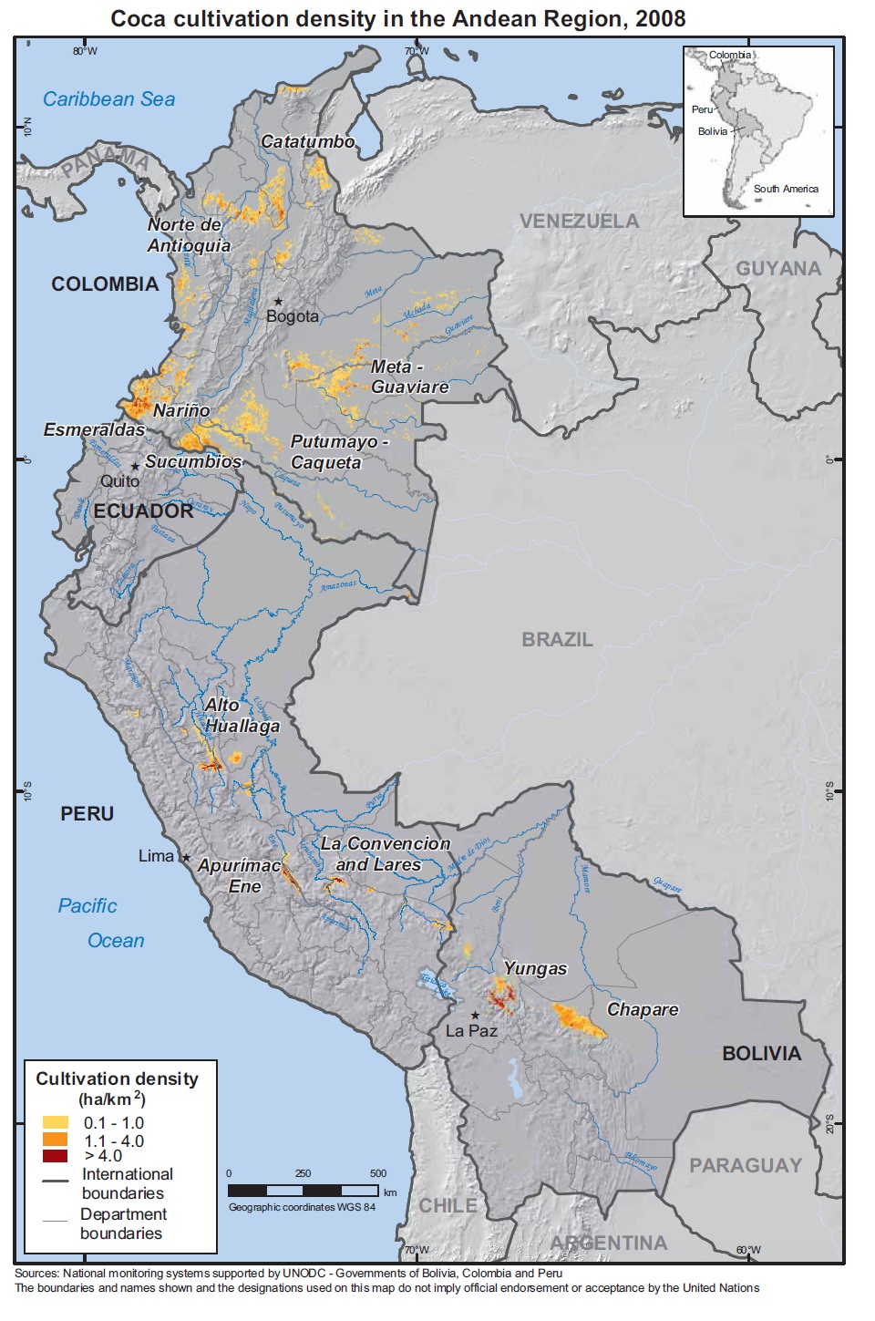Publication des statistiques de la production de drogue au Pérou, Bolivie et Colombie
