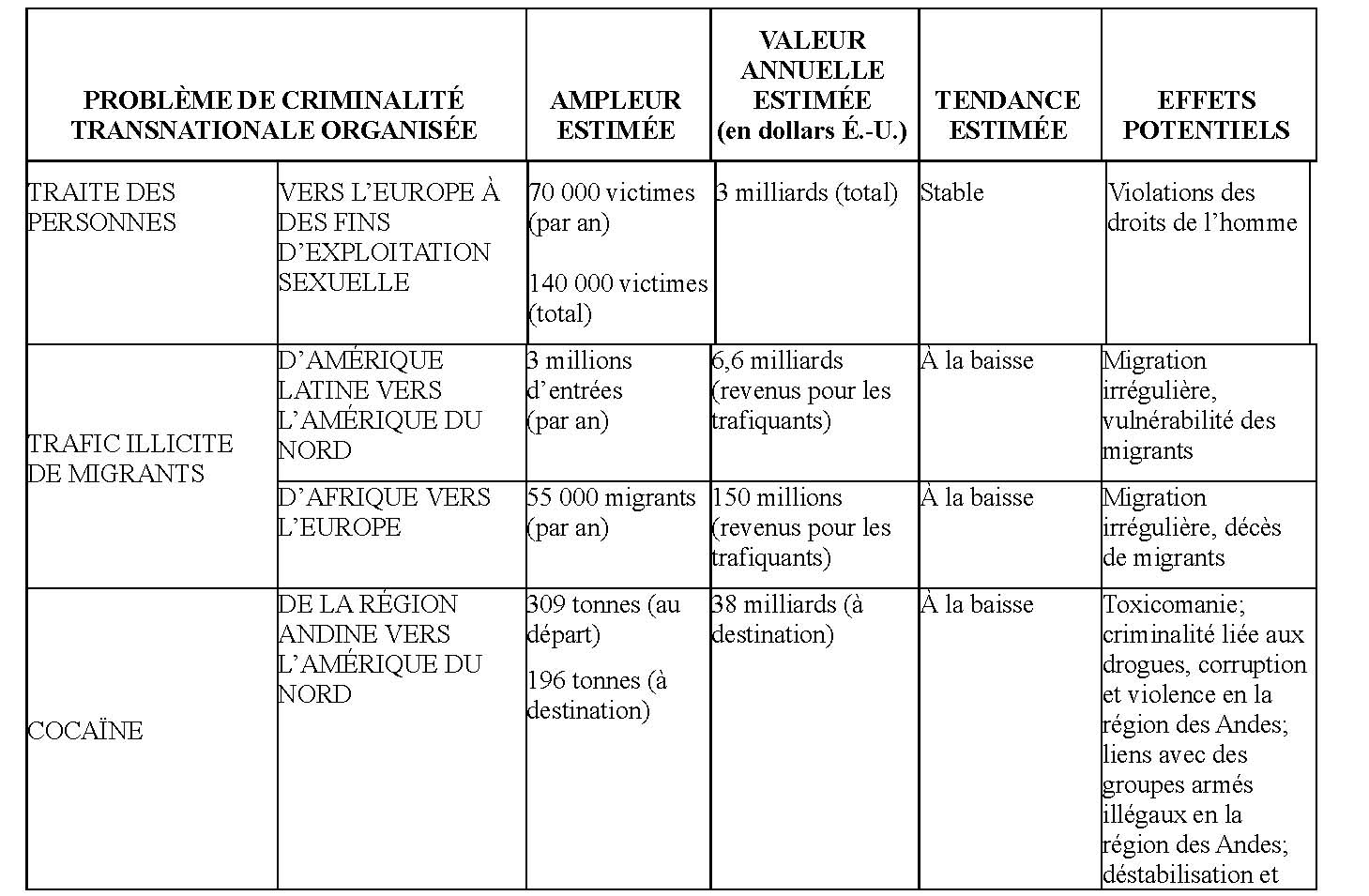 Ce rapport identifie les trafics criminels les plus importants tout en quantifiant leurs poids financiers ainsi qu’en évaluant la taille du marché criminel en question. Cette étude ne s’intéresse donc pas aux organisations criminelles en tant que telles mais aux marchés que ces dernières génèrent.