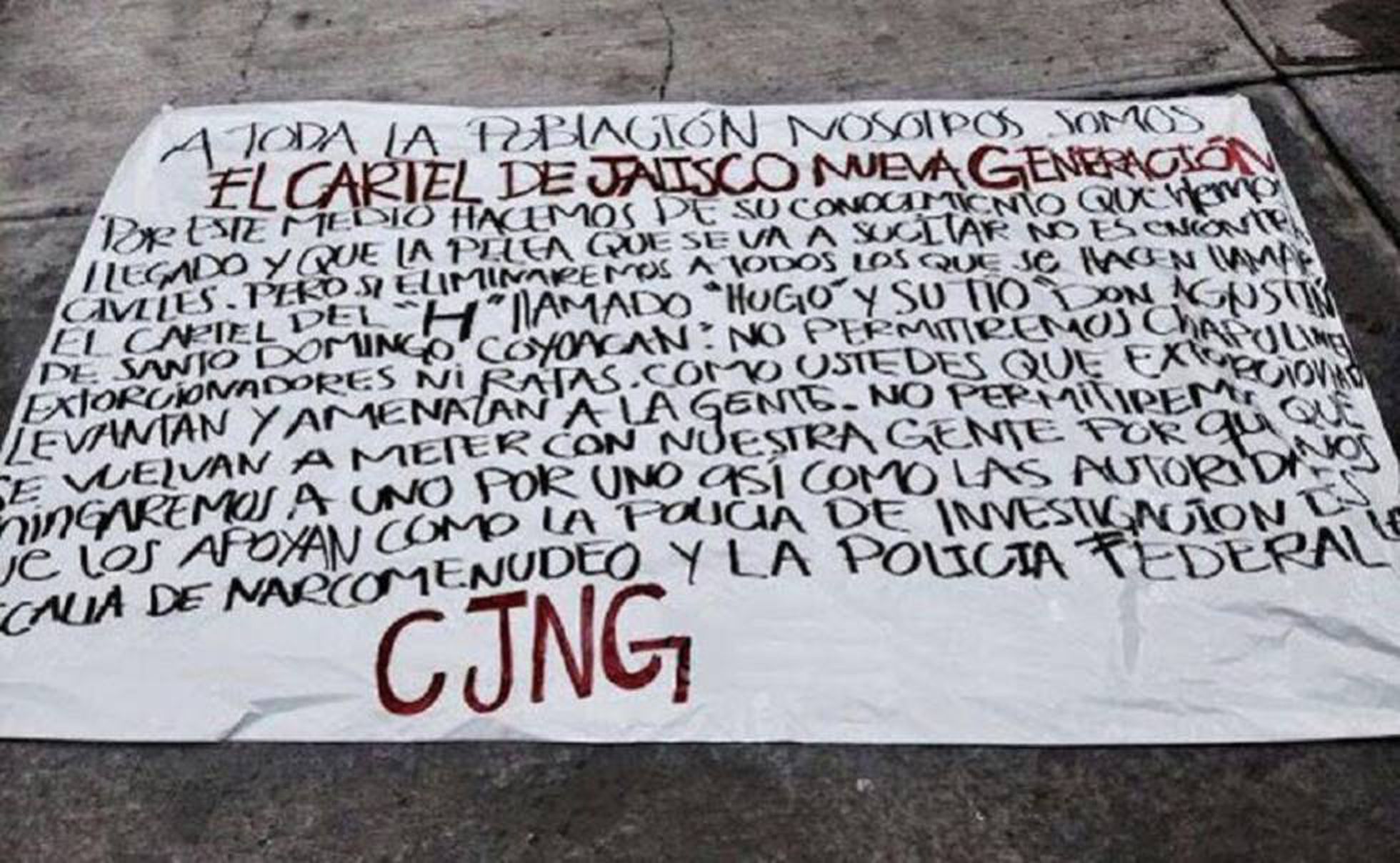 25 des narcomantas ont été trouvés dans l’État de Basse-Californie, 11 dans le Michoacan, 10 dans le Quintana Roo, 10 dans le Tabasco,… Le plus grand nombre de banderoles est attribué à Cartel de Jalisco Nueva Generacion (13). 65 messages (55,5% des cas) étaient accompagnés d’au moins un corps humain…